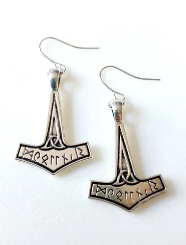 Thors Hammer Earrings Big Silver Plated Mjolner Pagon Norse Viking Earrings