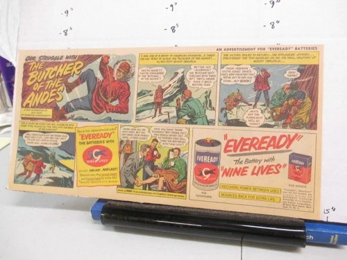 newspaper ad 1951 EVEREADY battery comic Butcher Andes mountain climber Jack Sac