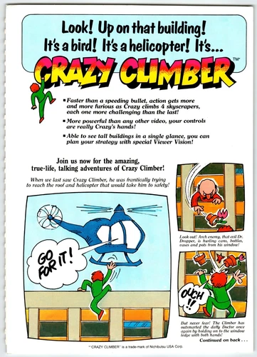 Crazy Climber Arcade Flyer 1980 Original Promo Retro Video Game 7.75" x 10.75"