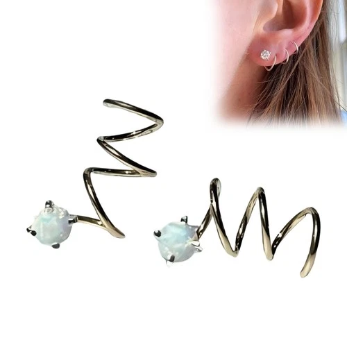 Spiral Twist Ear Climber Earrings with Natural Moonstone - Ivy Inspired