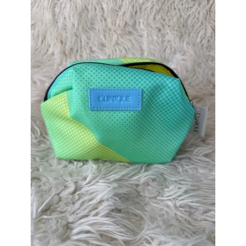 Clinique Makeup Bag Teal Green Polka Dot Geometric Cosmetic Pouch Travel NEW