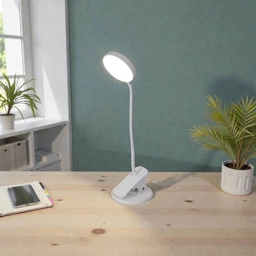 LED Clip Light USB Rechargeable Desk Lamp White 360° Flexible Reading Study Bed