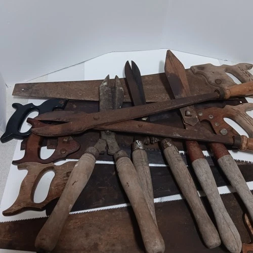 Antique Tool Lot - BOSS Clippers, Hand Saws, Metal Shears, Metal Oil Can Opener