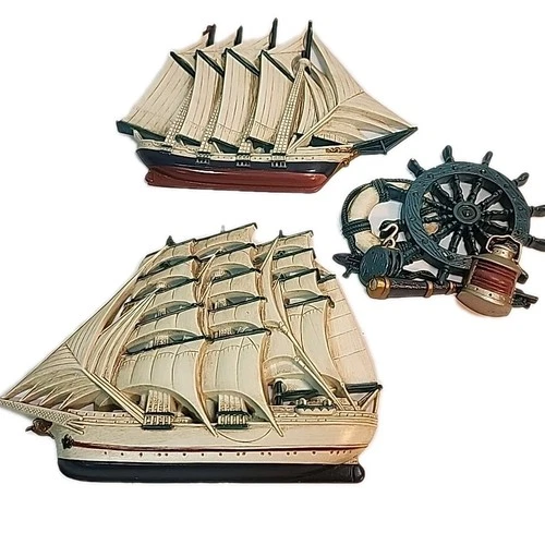 Vintage Clipper Ships Sailboats Wheel Nautical Wall Hanging Decor Burwood 3 Pcs