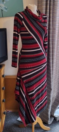 * JOE BROWNS * STRETCH STRIPE DESIGN DRESS (ASYMMETRIC HEM) UK Sz 8