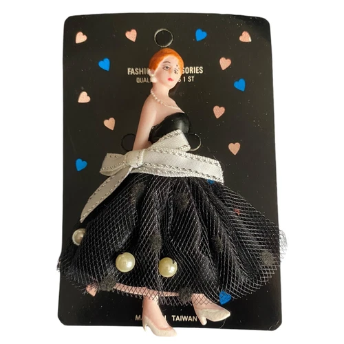 Vintage 3.75” Doll Party Dress Brooch Lapel Pin Accessories Fashion Lady Dancing