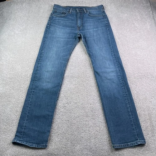 Levis Jeans Mens 33x34 Blue 505 Regular Fit Straight Leg Workwear Stretch Denim