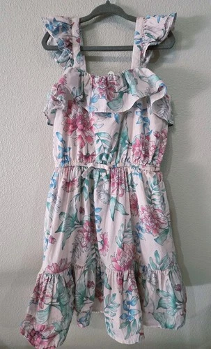 Janie and Jack Girls Pink Floral Ruffle Dress Size 7 Cotton Lined