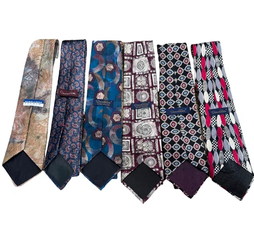Oscar de la Renta Men's Necktie Tie Silk Red Blue Geometric USA 57-59 in