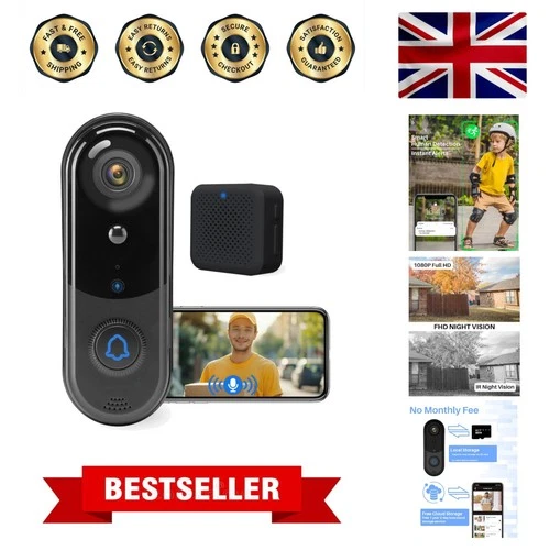Waterproof 1080P Smart Doorbell Camera with Two-Way Audio & Cloud Storage