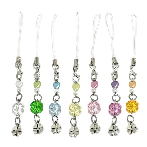 Acrylic Keychain Unique Beaded Phone Pendant Four Leaf Clovers Phone Strap Charm