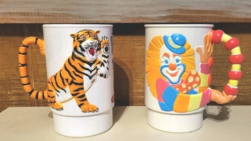 Vtg Ringling Bros. Barnum & Bailey Circus 1988 & 1990 3-D Tiger Clown Cups Set 2