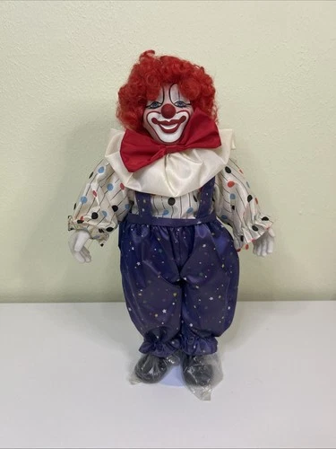 Circus Parade Collection Porcelain Clown Hand Painted Doll 1991 18” W/ Stand
