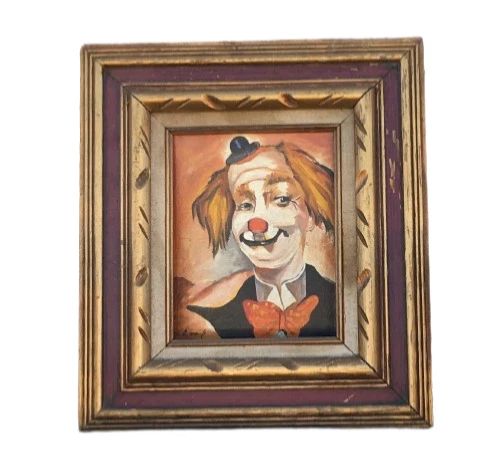 Vintage Original Happy Clown Framed Oil Painting Signed Evans Wear