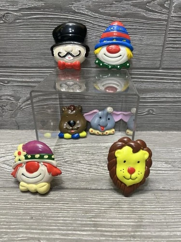 Vintage Refrigerator Magnets Circus Theme Plastic 3” Clowns Elephant Lion Bear