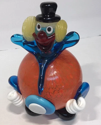 Unique HTF MURANO Red Orange Circus Clown Glass Figurine W/ Tag Italy