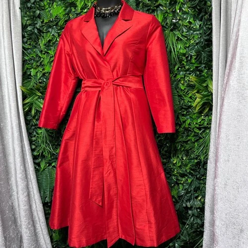 Frances Valentine Wrap Coat Dress XL Red Textured Notched Lapel Womens 3777