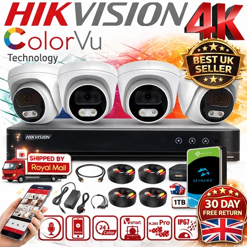 Hikvision 4CH 8MP 4K ColorVu Audio CCTV System DVR Camera Kit AcuSense 2TB HDD