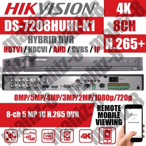 HIKVISION DS-7208HUHI-K1 8Ch Hybrid DVR Recorder Turbo HD 8MP 4K Analogue Camera
