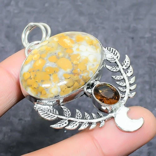 Cobra Jasper, Citrine Gemstone 925 Sterling Silver Jewelry Pendant 2.36"