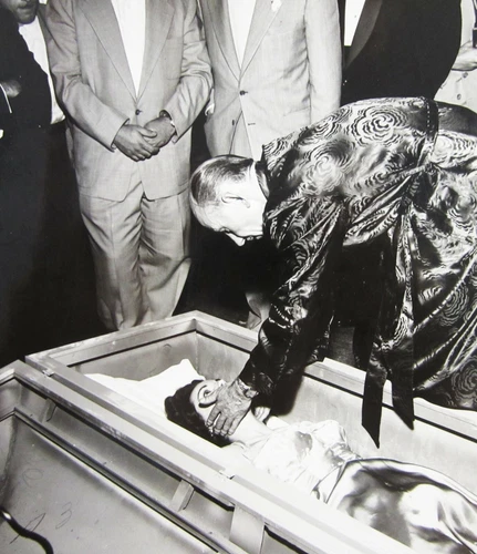 Vintage Horror Movie Set Photo Vincent Price (?) Lady Coffin Casket c. 1950's