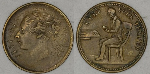 VICTORIA REGINA / KEEP YOUR TEMPER (male) UK whist counter token