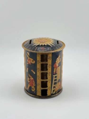 Vintage Tin Coin Counter Bank Made in USA Sun Face Savings Bank w/ Coin Slots