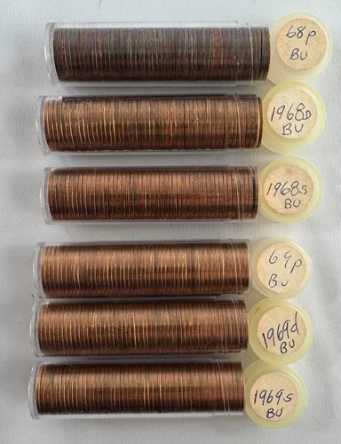 6 Roll Lot BU Red Lincoln Memorial One Cent ROLLS 1968 thru 1969 See Description