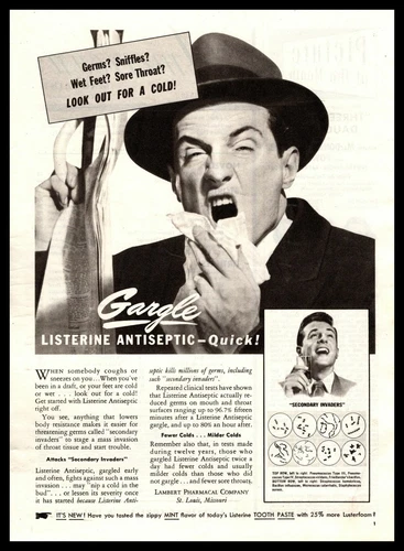 1950 Listerine Antiseptic "Gargle For Colds And Sore Throats" Vintage Print Ad