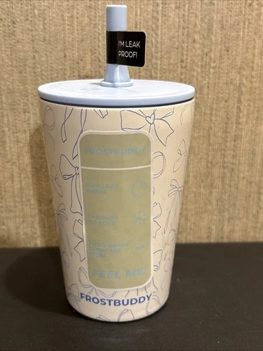 FrostBuddy Kids Stainless Steel Blue Bow Tumbler Cup Lid Straw NEW