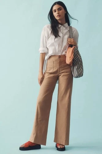 Maeve Anthropologie The Colette Full Length Wide Leg Pant Camel Size 24 NEW NWT