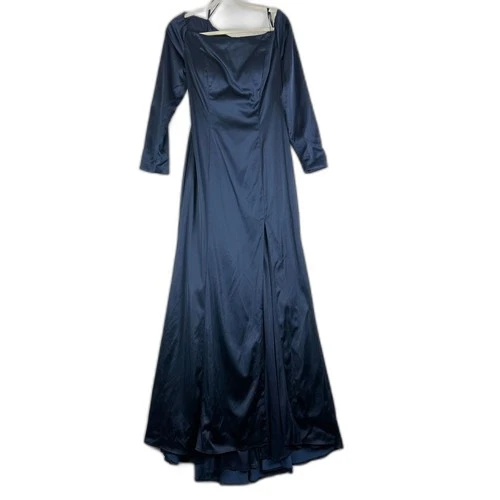 Mon Cheri Colette Off The Shoulder Long Sleeve Dress Size 14 NEW Navy Stretch