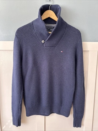 Tommy Hilfiger Men's Jumper Size Small Navy Blue Shawl Collar Long Sleeve Cotton