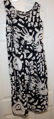 VINTAGE Ladies JAMS WORLD Black & White Tropical Tank Dress Pockets, sz M