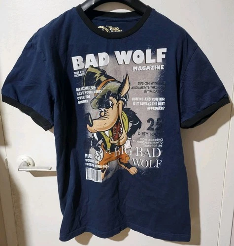 Big Bad Wolf Disney Studio Collection T-shirt Magazine Cover Blue Men's Large