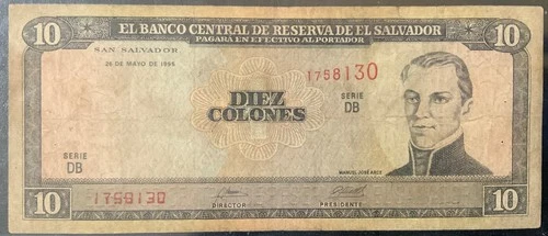 1995 EL SALVADOR PAPER MONEY - 10 COLONES BANKNOTE!
