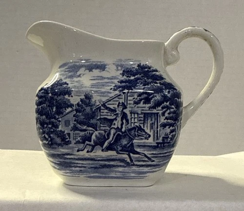 Staffordshire Liberty Blue Creamer Historic Colonial Scenes: Paul Revere