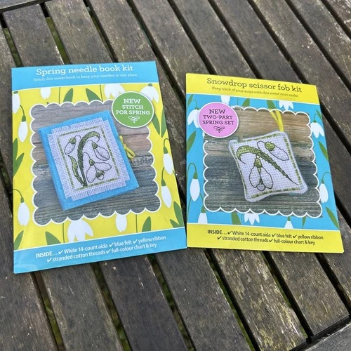 WOXS Cross Stitch Snowdrop Set of 2 Needlebook And Scissor Fob Kits New