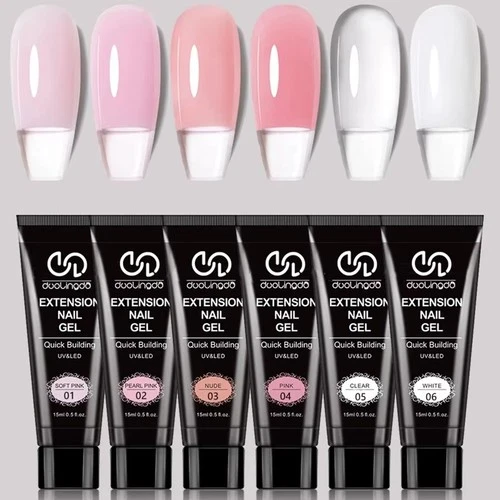 Poly Nail Gel Set, 6 Colors Clear Pretty Poly Extension Gel Nail Set, Nude Pink