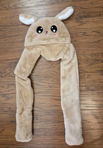Moving Ear Hat Plush Hat & Mittens In One Bunny Brown Kawaii Whimseygoth