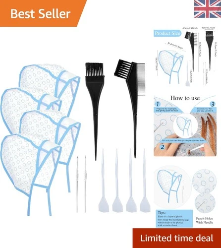 Blue Hair Highlighting Caps with Hooks - 12 Pcs Kit for Effortless Coloring