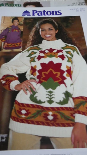 PATONS KNITTING PATTERN- LOVELY COLOURWORK JUMPER WITH 2 VERSIONS IN D.K-30-40IN