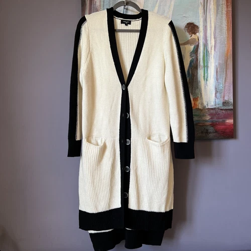 Colour Works Sz M Black/White Ikat Print Open Front Knit Cardigan Sweater 💖