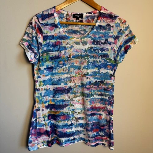 Colour Works Womens Watercolor Bejeweled T-Shirt Top Abstract Art Size Large