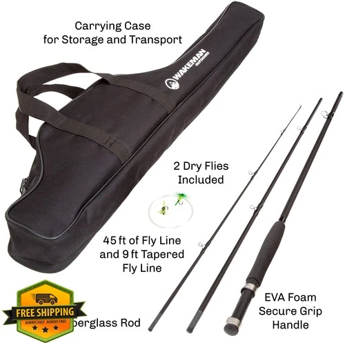 Wakeman Fly Fishing Rod Reel Combo Kit Black Case Flies Line