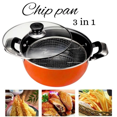3-in-1 Deep Fryer Cooking Set – Use Kitchen Pot with Frying Basket & Glass Lid