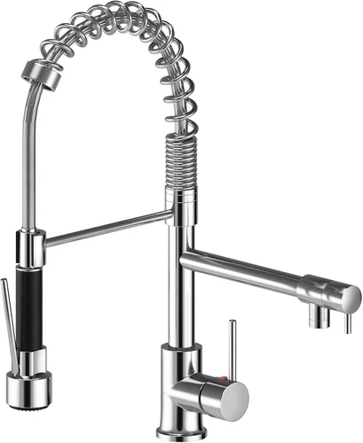 Commercial Kitchen Sink Mixer Tap with Two Spouts, Single Handle Pull Out Spraye