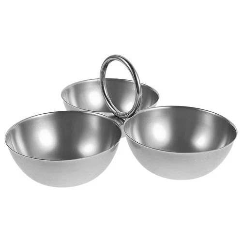 Stainless Steel Snacks Bowl with Ring Handle - 3 Compartment Serving Platter