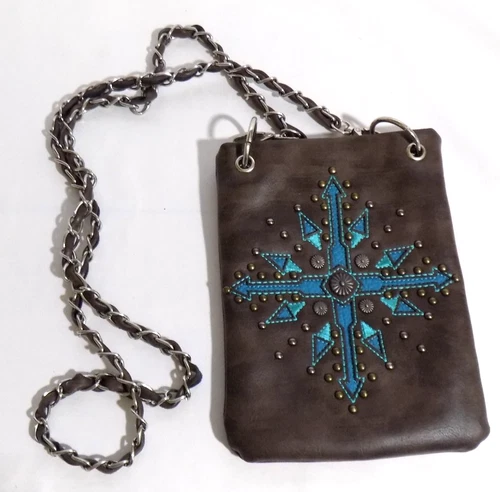 P & G Collection Western Studded Small Brown Crossbody Purse Compass NICE