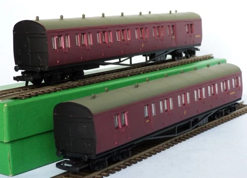 2 x Rare Airfix BR Ex-GWR 60' "B-Set" Suburban Comp/Brake Maroon Boxed W2 OO